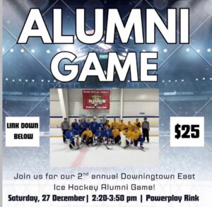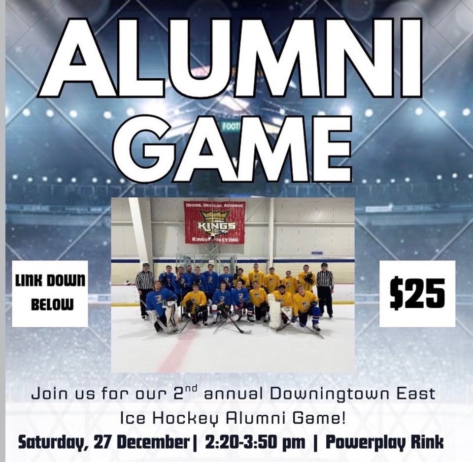 Sign up for the 2nd Annual Downingtown East Ice Hockey Alumni Game! November 12, 2025 Sign up here: 2nd Annual Downingtown East Ice Hockey Alumni Game